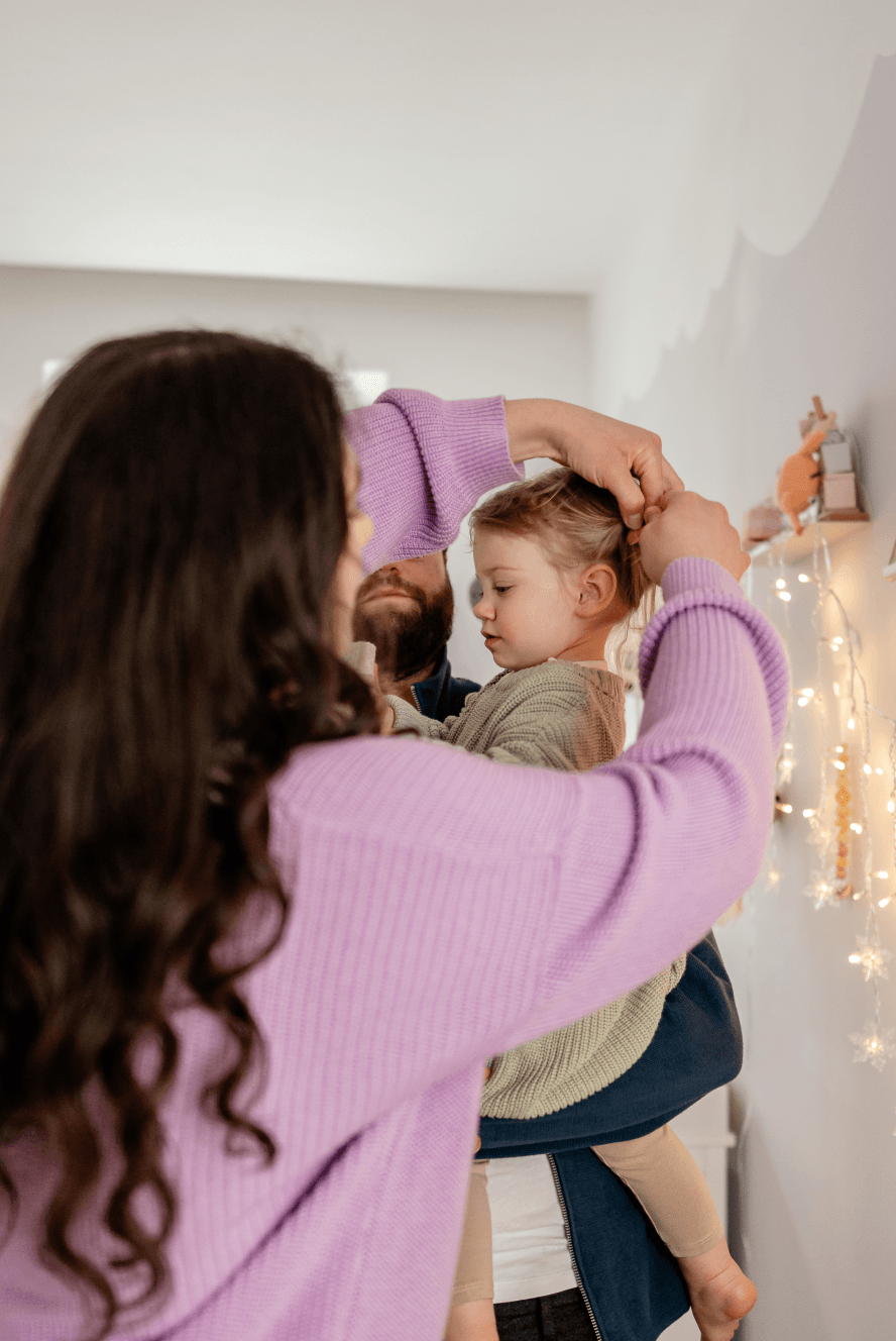 Kurz darauf erfüllt Lachen den Raum. Das Wohnzimmer wird zur Bühne für Freude. Gemeinsam spielen Mama, Papa und ihre Tochter, mal wild, mal ganz ruhig – aber immer verbunden. Alles wirkt leicht, vertraut und voller Energie. Für einen Moment fühlt es sich so an, als würde die Welt draußen stillstehen.