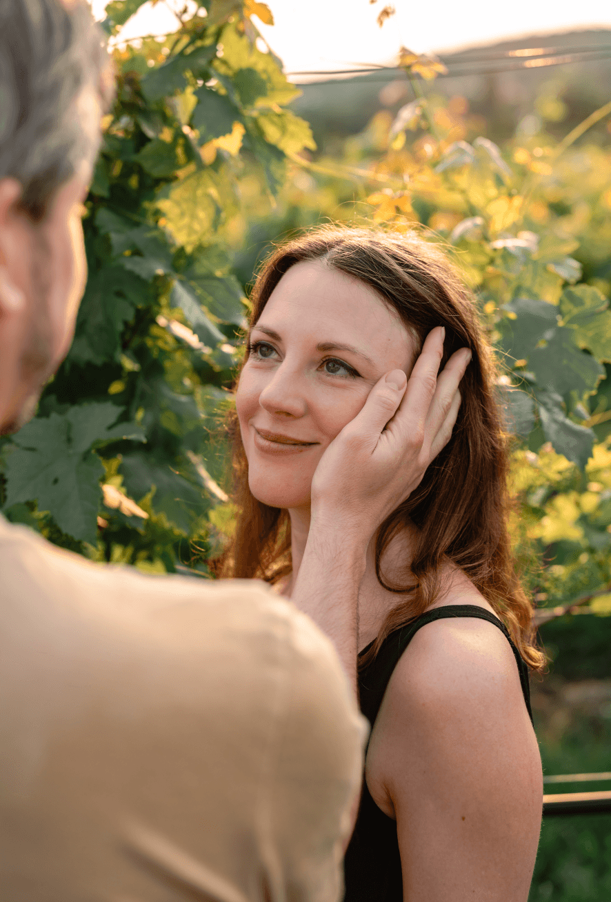 Ein lauer Sommerabend im 19. Bezirk. Das Sonnenlicht legt sich sanft über die Weingärten und taucht alles in einen warmen, goldenen Schimmer. Ein perfekter Moment, um Liebe sichtbar zu machen.